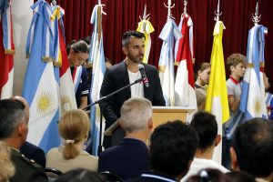 El acto se desarrolló en un clima de profundo respeto y emoción, destacándose la participación de abanderados escolares, las palabras conmemorativas de los veteranos de guerra y los discursos del secretario del Club Argentino de Servicios, Diego Fala, y del secretario general y de Vinculación Institucional del municipio, Juan Lucero.